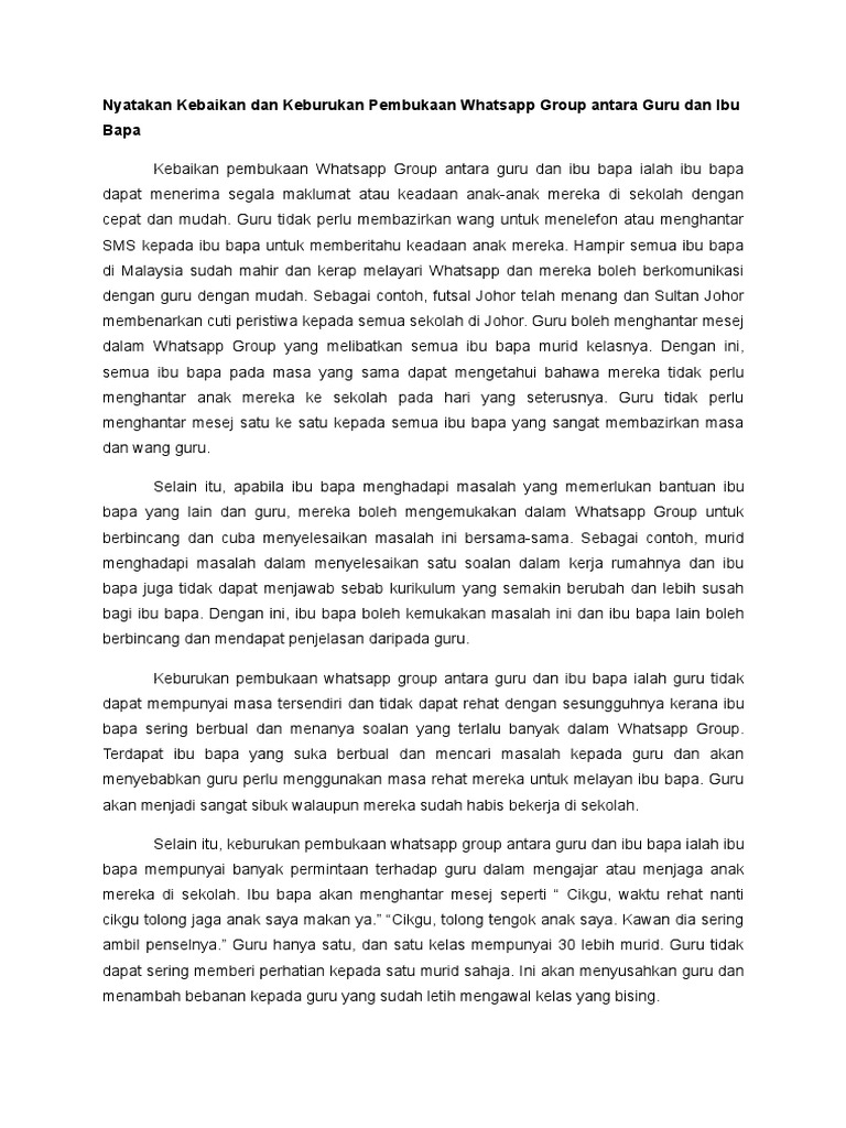 Nyatakan Kebaikan Dan Keburukan Pembukaan Whatsapp Group Antara Guru Dan Ibu Bapa