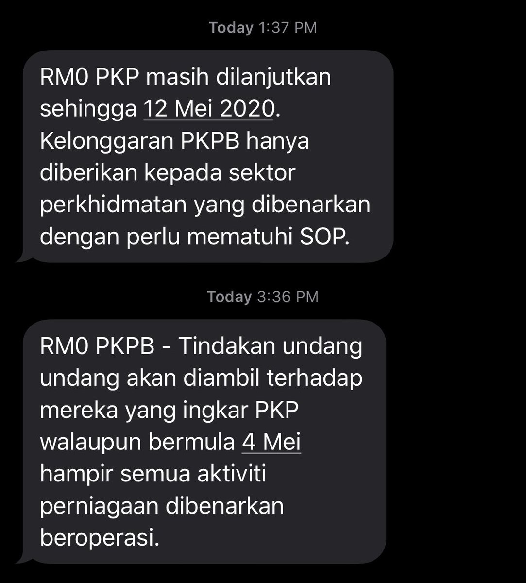 Samantha Chong On Twitter Hari Ini Mkn Hantar Sms Pkp Masih Lanjut Hingga 12 5 Tindakan Undang2 Akan Diambil Terhadap Mrk Yg Ingkar Pkp Undang2 Melarang Aktiviti Sukan Makanan Hanya Dibenarkan Bungkus Atau Melalui P Khidmatan