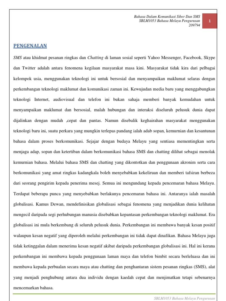 Pdf Korpus Bahasa Sms Antara Kreativiti Dan Ancaman Kepada Bahasa1
